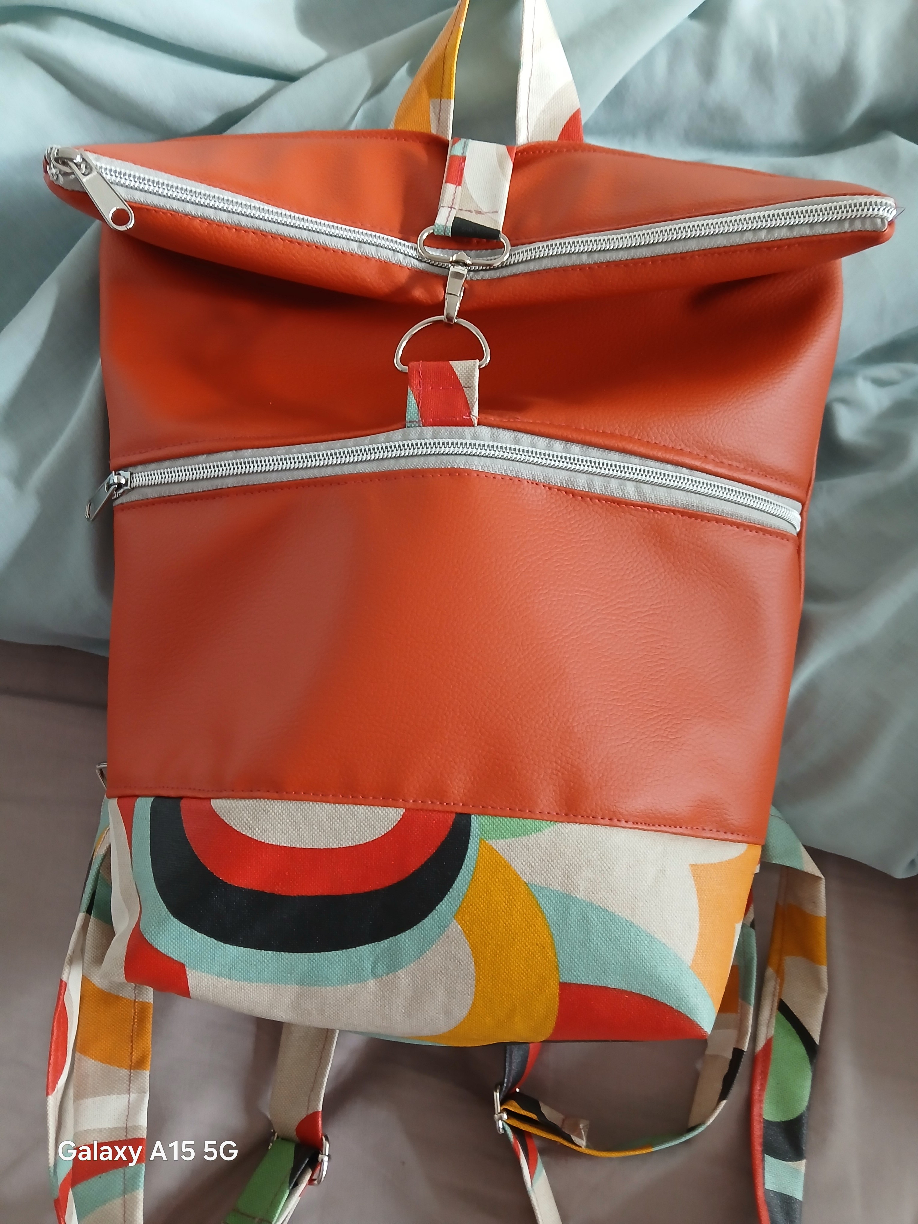 Matiére extérieure : simili cuir orange et imprimé ,doux au toucher et facile à nettoyer.